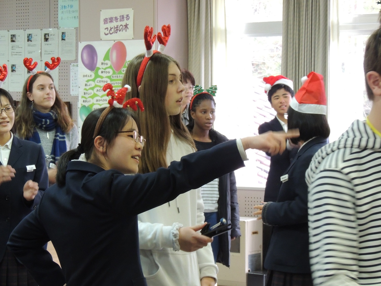 ・昼の放送では常駐のAETが、英語で給食献立の紹介や行事、世界の文化・習慣をレポート