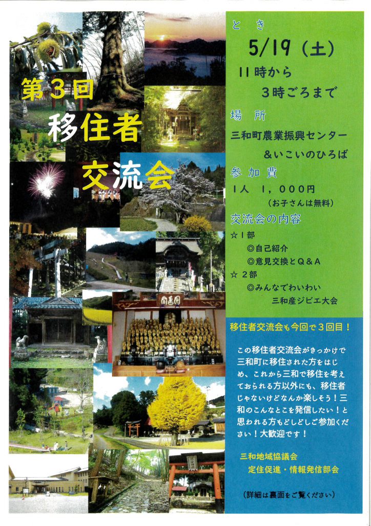 ツアー実施日の5月19日は、福知山市の南部に位置する三和町にて地域の団体である三和地域協議会の主催により第3回移住者交流会が行われました。