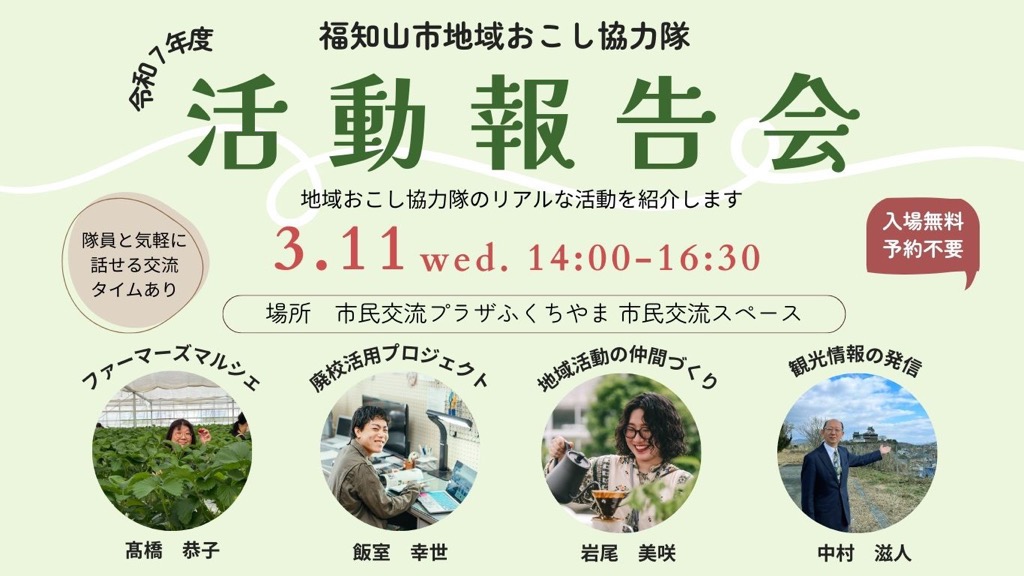 このたび、これまで行ってきた活動の成果を市民の皆様や本市の協力隊に関心のある方に広く知っていただくため、活動報告会を開催します。