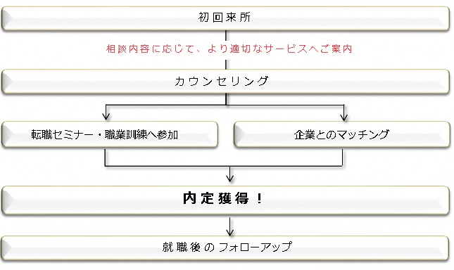 【担当者制就職相談 】 経験豊富な相談員が就職から就職後のフォローまで、一人ひとりに合った支援を行います。