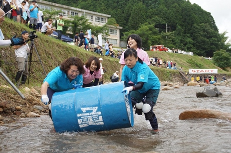 最近では、福知山の雲原の夏の風物詩となっている「ドラム缶転がしタイムレース」。