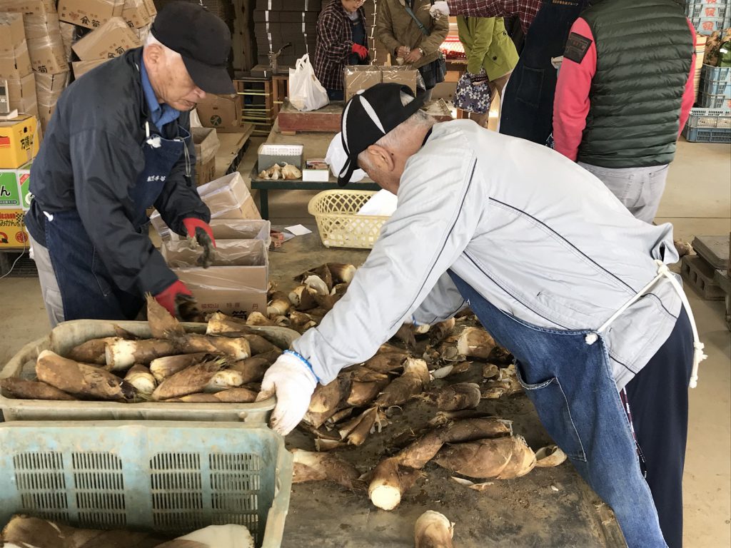 そして、春を迎えると、すべてが地中に埋まっている「上」、穂先のみ地表に出ている「中」、3分の1ほどが地表に出た「小」で仕分けがされます。直売所での販売や全国発送を行っており、5月上旬ごろまで出荷されます。