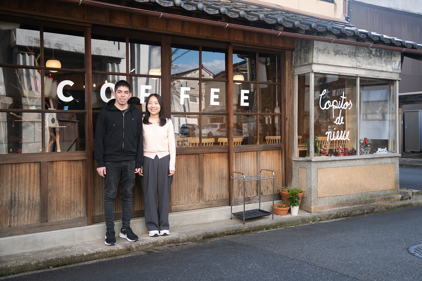 コーヒー生産者協会の職員だった同国出身のホルヘさんと結婚し、2024年4月に日本に移住。9月に福知山市のまちなかにカフェ「Copitos de nieve」をオープン。