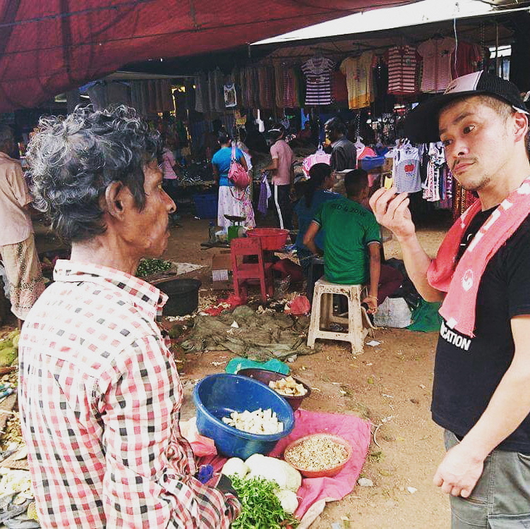 ▲スリランカで食材探しのため現地の人と話す健さん(2018年)