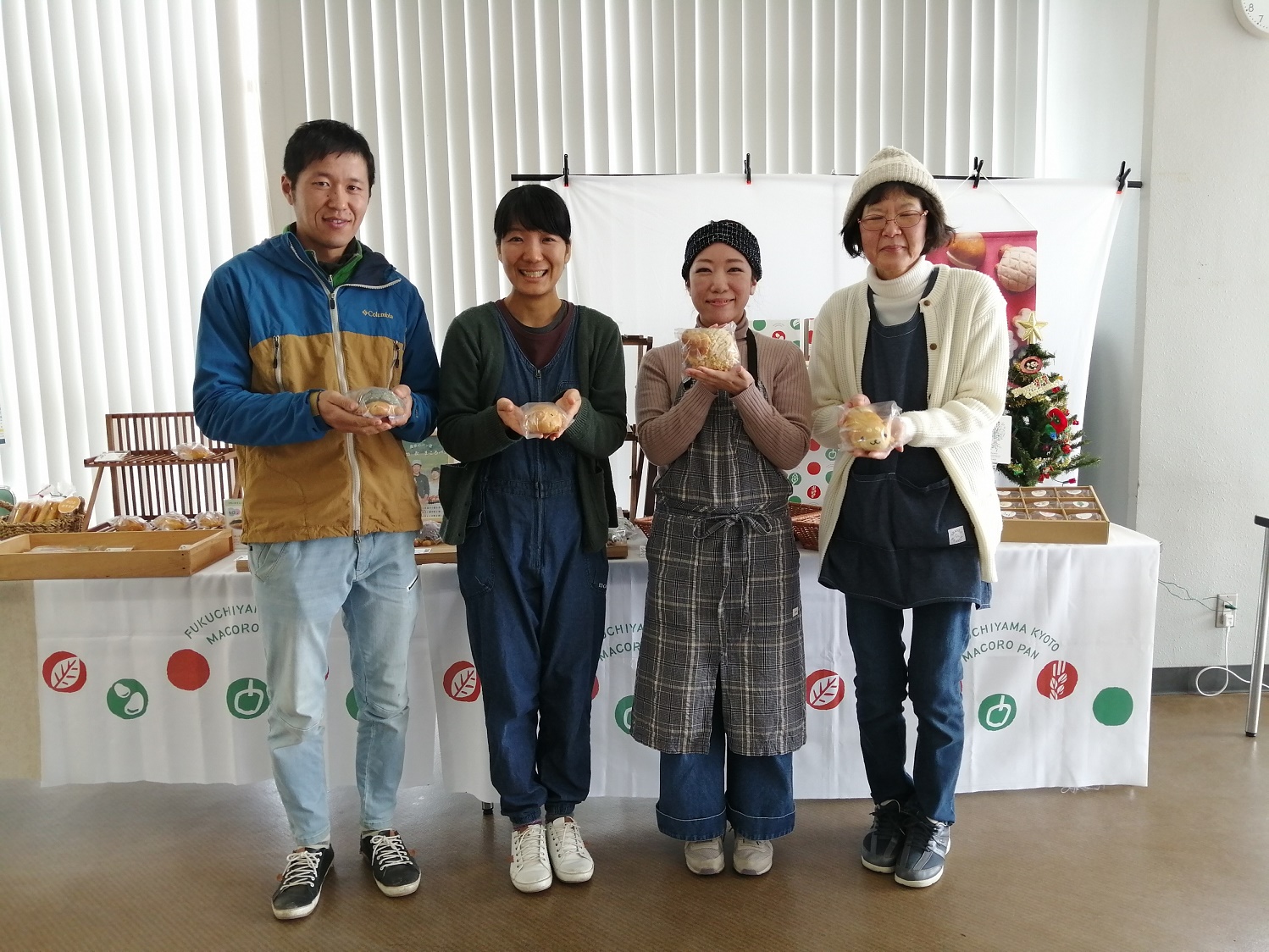 ▲まころパンは毎週土曜日 福知山三段池公園 総合体育館 飲食スペースにて販売中