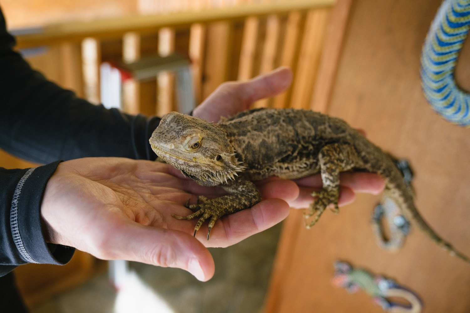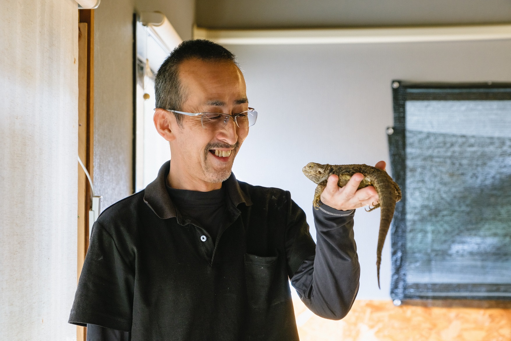 江口さんの家には、ヘビやトカゲ、大きな亀やミーアキャット、犬など個性豊かな約30種100匹の動物が暮らしています。飼育を始めるきっかけになったのは、フトアゴヒゲトカゲ。