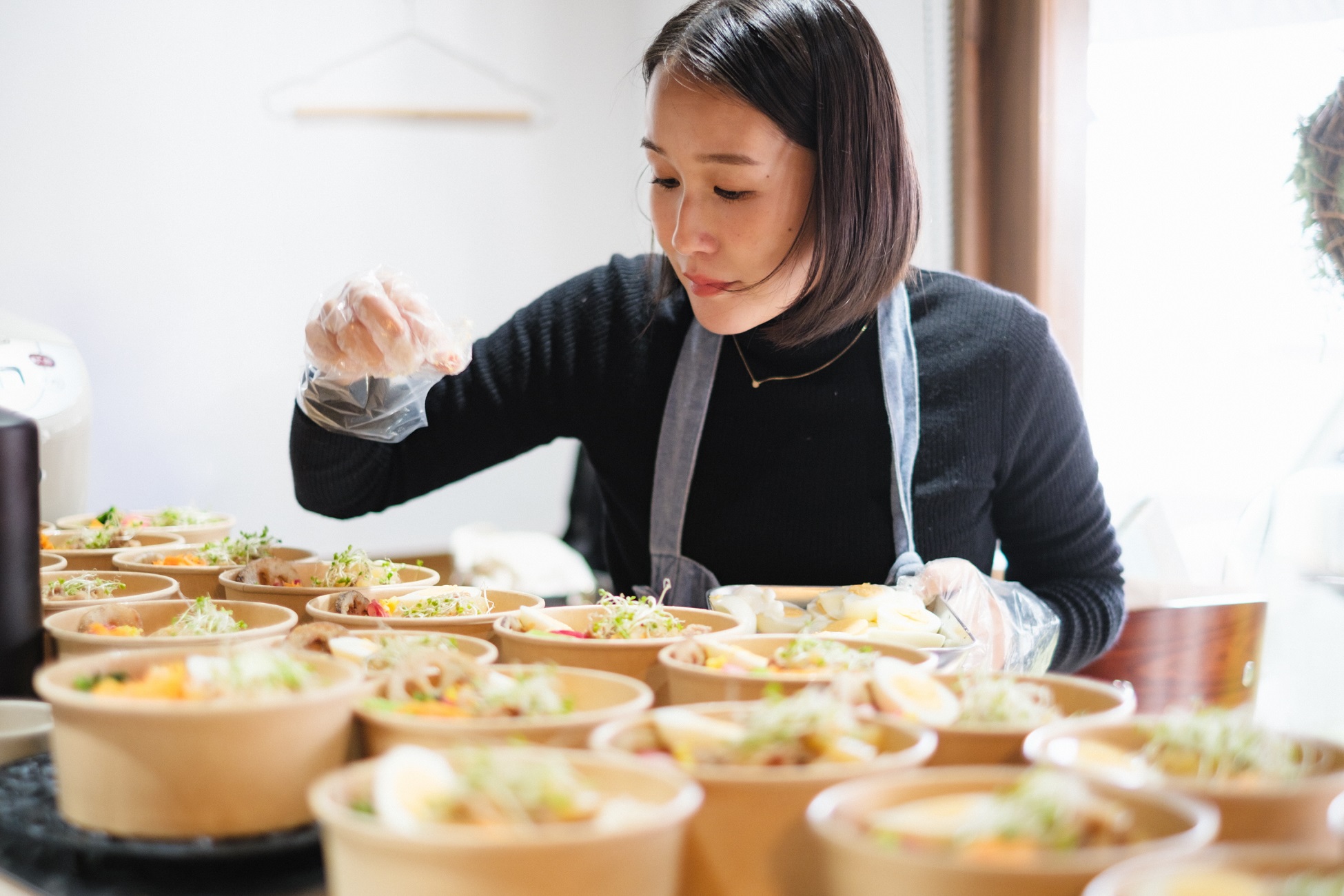 そこからSNSで情報発信したり、女性起業家交流会などに参加するなど積極的に行動していると、出張料理や料理教室など仕事の依頼が舞い込むようになります。取材日当日も、農家の人から依頼されたお弁当づくりに励んでいたkonomiさん。