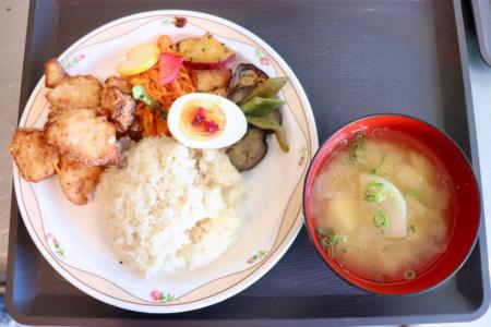 ▲Farmers Tablesで提供!地元野菜を使用した塩麹唐揚げ定食