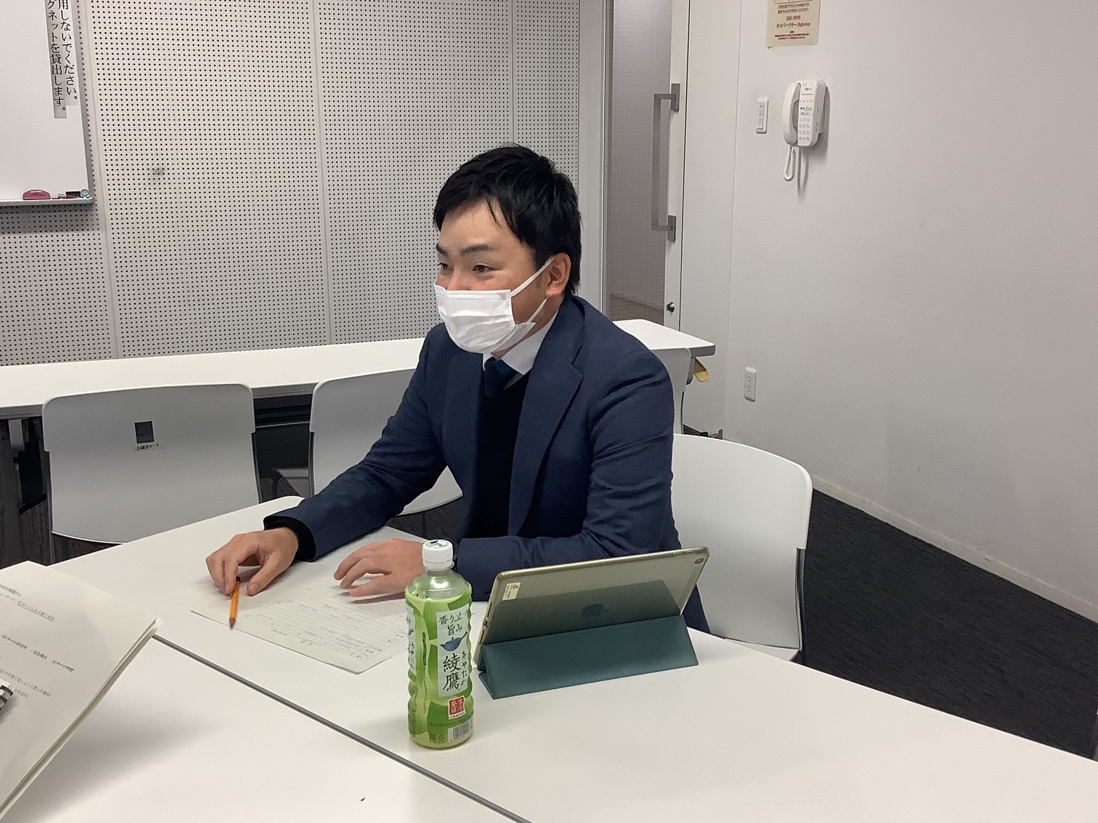 △インタビューに答える奥藤さん。移住に対する自身の思いを語った
