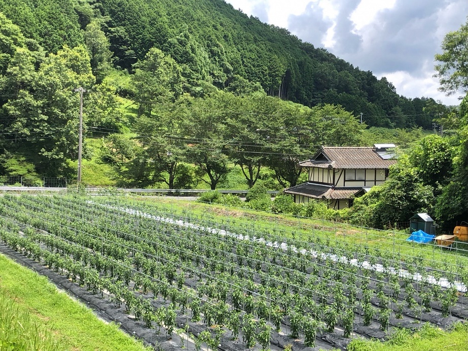△泰子さんの畑 地域の特産「万願寺とうがらし」を育てている