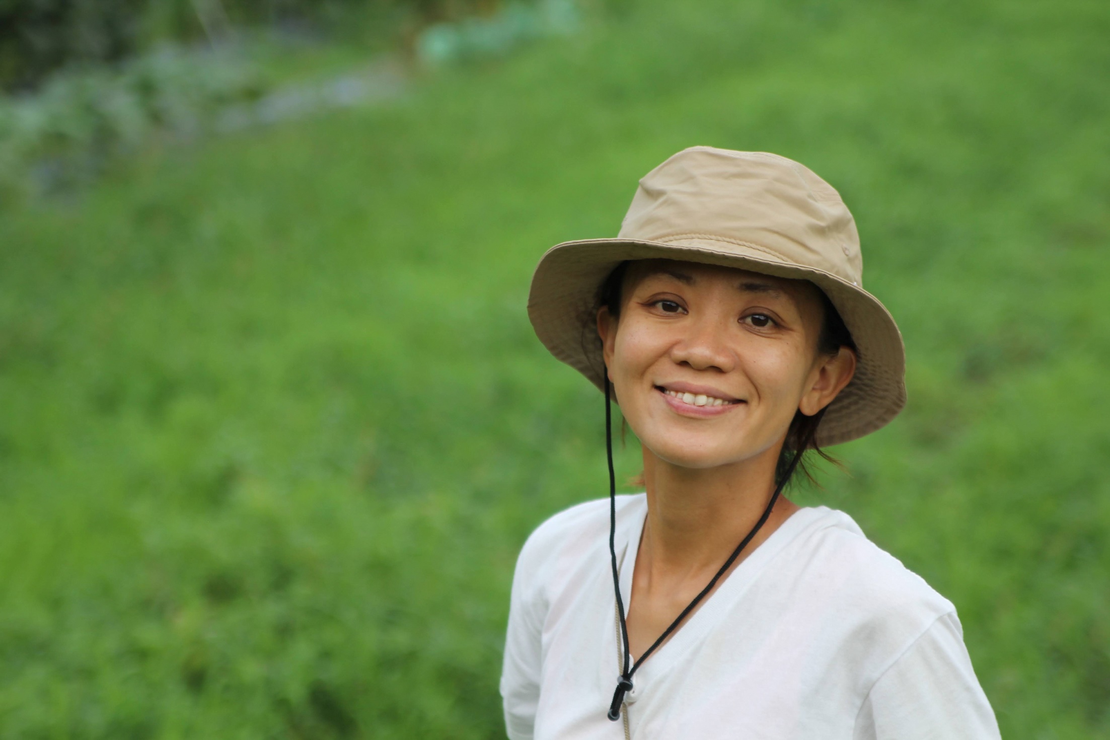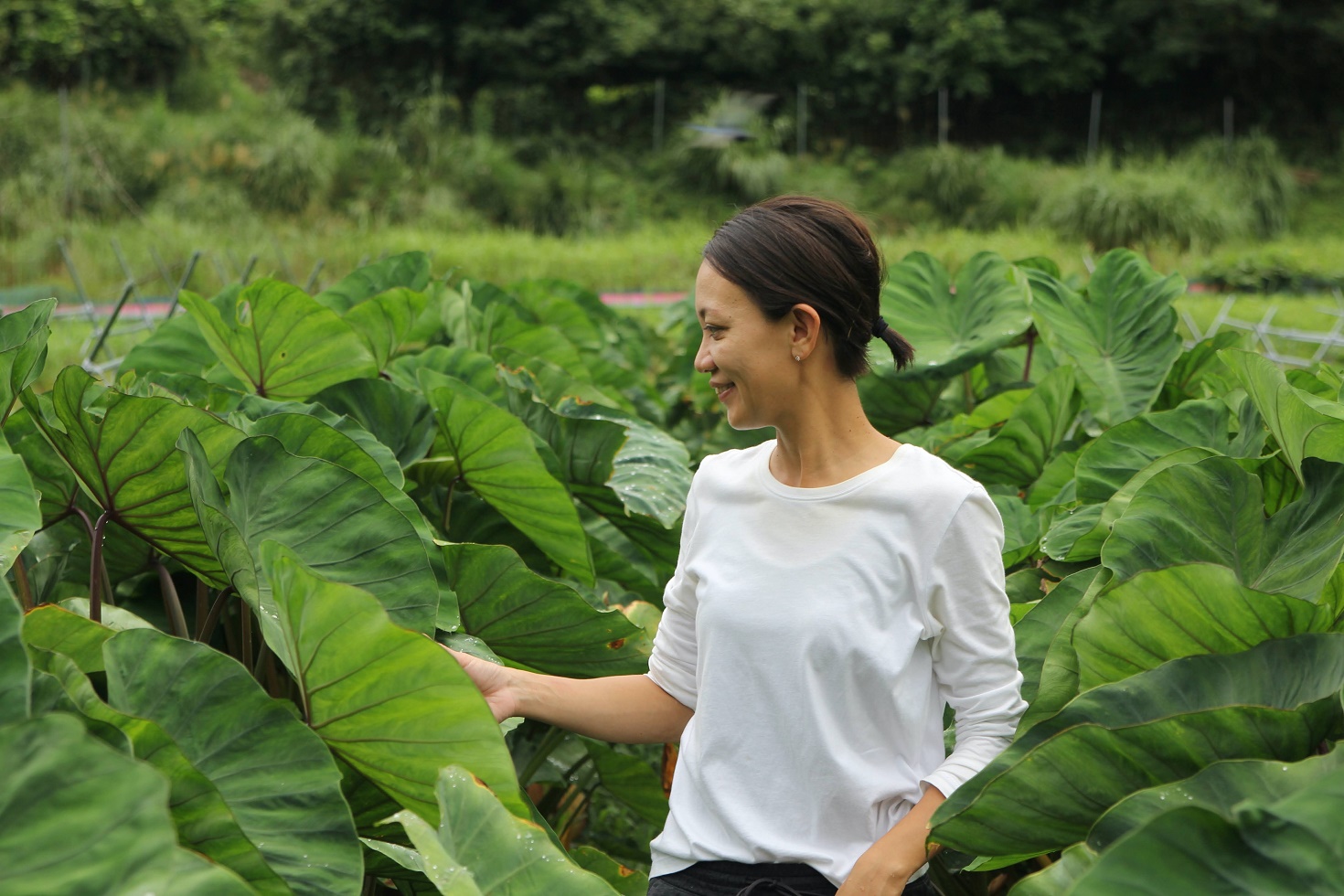 △里芋の畑にて とても柔らかい表情。心を込めて野菜を育てている様子が伝わる