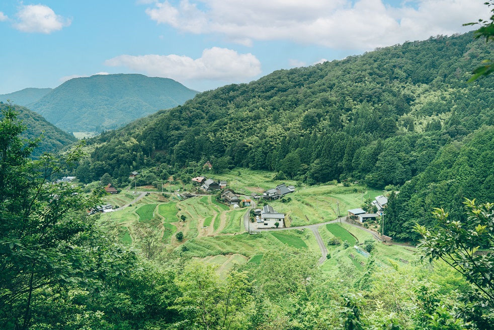 特におすすめは夏の景色で、「風が吹くと、青い稲穂が波打ってるように見える」と山村さんは話します。教えてもらった展望台からまちを見てみると、傾斜面に階段状に作られた棚田、青々とした緑、人が暮らす家。まるで一枚の絵のような景色が広がっています。