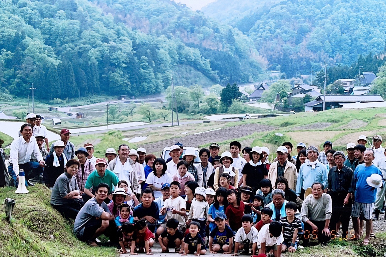 (2005年に開催された棚田農業体験ツアー/毛原の棚田農業体験ツアー実行委員会提供)