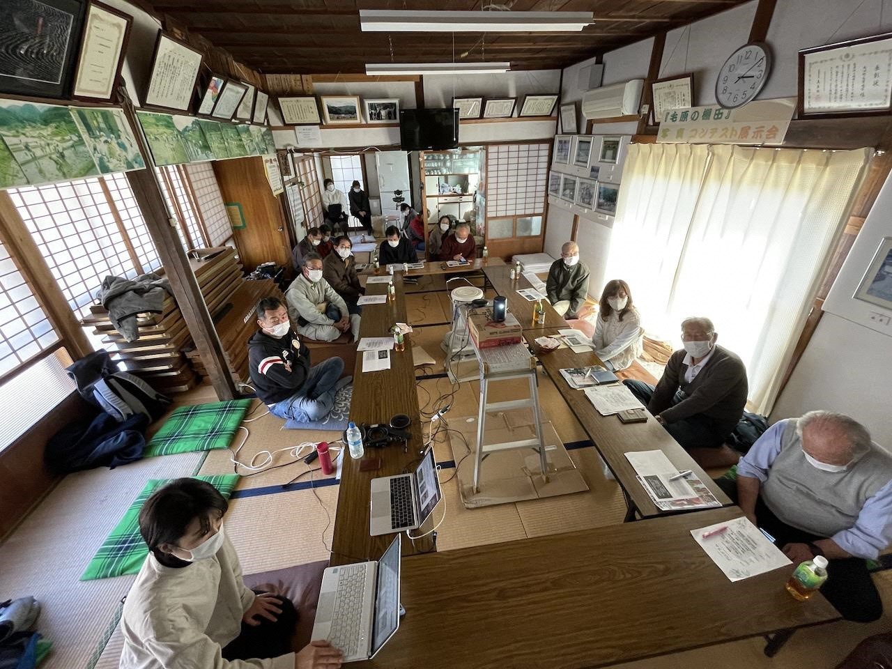 「最初は隣の佛性寺でインタビューを予定していたんですが、毛原で「棚田農業体験ツアー」(現・棚田「体感」ツアー)を始めたことを知って、せっかくなら話を聞きに行きたいと私含めて4人で参加したんです。おもしろい話が聞けてたというのもあったけど、その後に打ち上げで地元の人と一緒にお酒飲んでしゃべって…ほんとに楽しかったんですよ」
