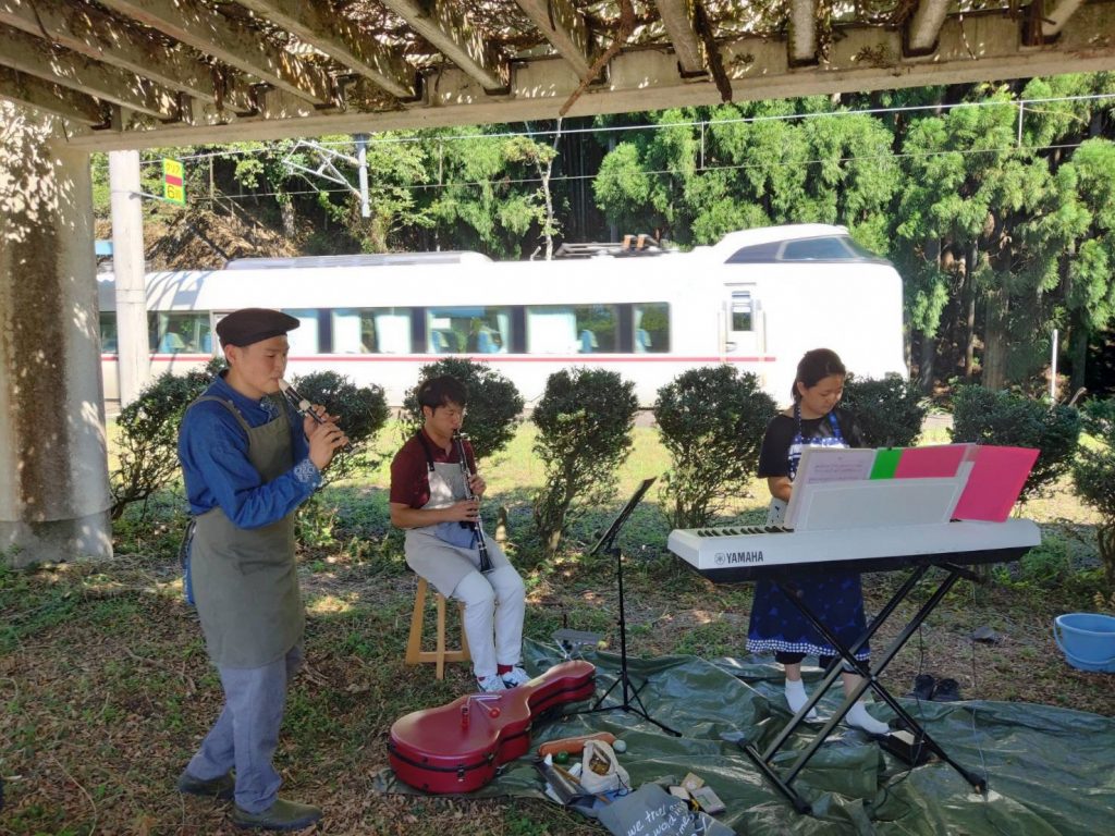 移住を検討し始めた当初から起業したいという思いがあった河野さん。仕事探しのために立ち寄ったハローワーク福知山で、無料で起業についての相談ができる福知山産業支援センター「ドッコイセ!biz」の情報を知り、相談を始めました。起業内容について相談する中、「福知山ではオーケストラ、吹奏楽などの音楽が一般に馴染んでいない」という言葉がきっかけとなり、“音楽好き夫婦がやっているカレー屋さん”として「オーケストラカレー」の開業を決意します。「オーケストラカレー」では河野さん夫妻が音楽を演奏しながらカレーを提供するというスタイルで、現在は地域のイベントでの出店をメインに活動しています。中でも、京都丹後鉄道二俣駅にある俊明多目的集会所で最近開催された一日限定の出店イベントでは、開店前から行列ができ、開店30分であっという間に完売となる人気ぶり。「より多くの方々にご来店して楽しんでいただけるよう、より良いお店づくりをしながら再度の開催を企画中です」とのことでした。