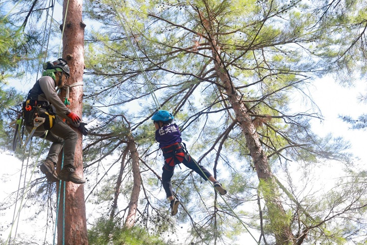 禾緒里さん「少しでも林業の面白さを知ってほしくて、普段は見れない木材の競りや、子どもたちにはツリークライミングを体験してもらったり、林業のはたらく車を見てもらったりしました。
