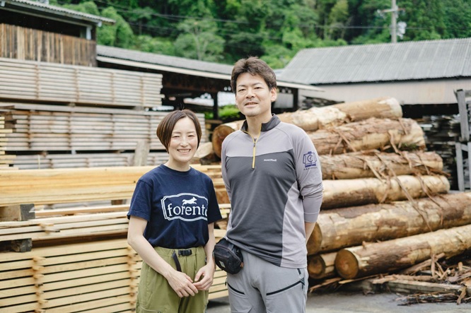 初代が1902(明治32年)年に林業、製材業、建築請負業を開始。1975年より、昌紀さんの父、宏一さん(現会長)が代表取締役に就任。4人の兄弟の末っ子として生まれた昌紀さんは、岐阜県で江戸時代から続く林業家のもとで修行したのち、2007年に家業へ戻る。現在は、取締役、山林部部長として主に伐採、森林管理などを担当。妻の禾緒里さんとともに、「森林レンタル forenta」や「もくもくフェスタ(現・もくフェス in中丹)」など森と人との距離を近づけるプロジェクトを行う。