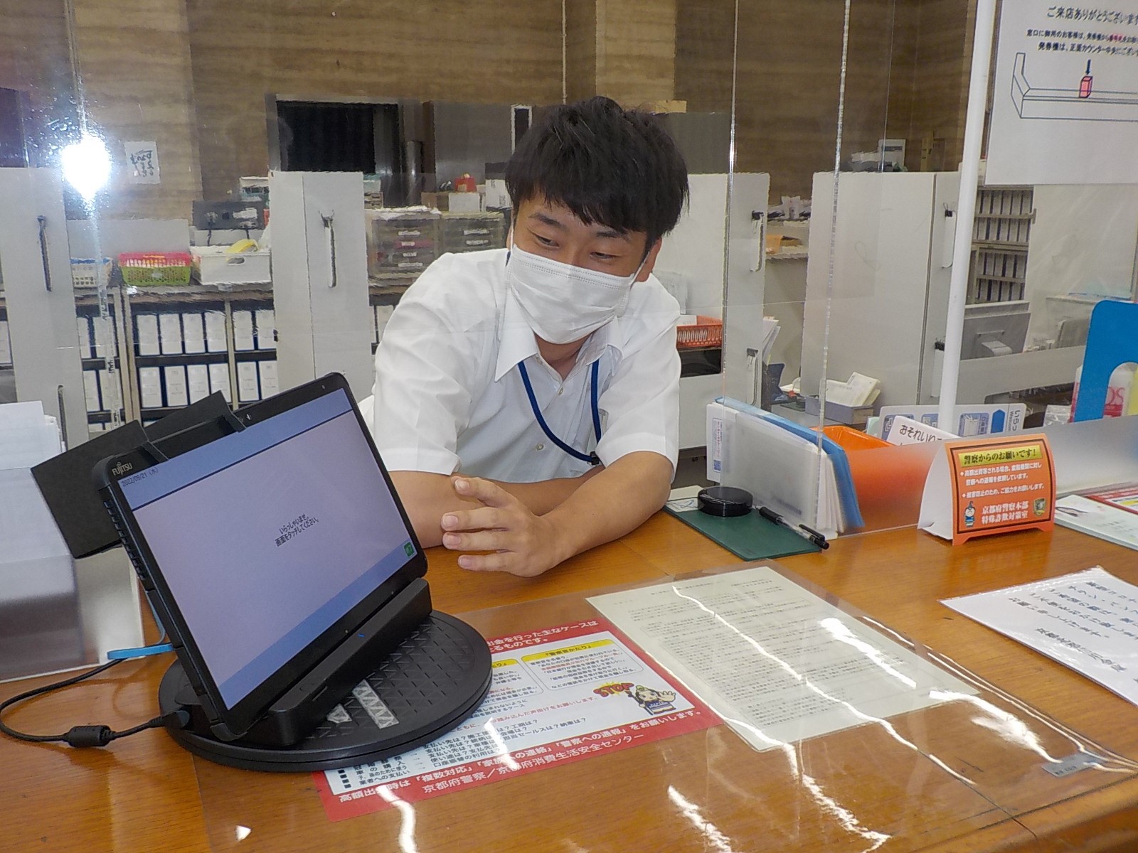 ▲窓口で対応する中井田さんの様子 日ごろから地域のお客様との会話を大切にしている